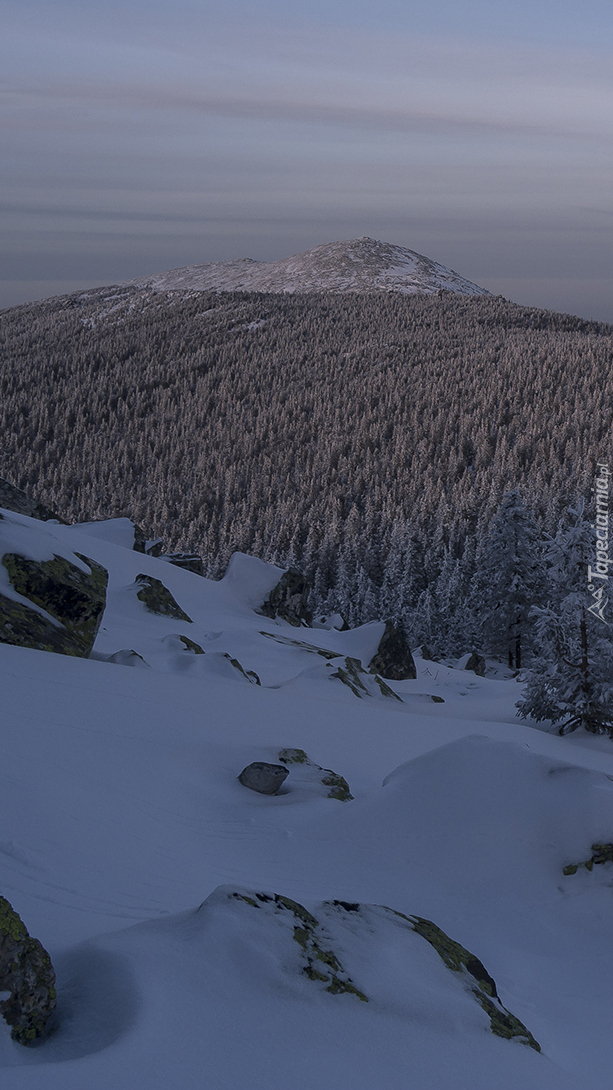Edytor tapety: Góry i las zimową porą