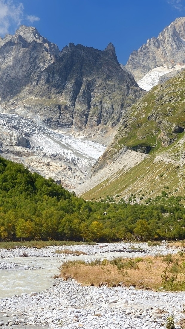 Edytor tapety: Kamienista rzeka w górskiej dolinie