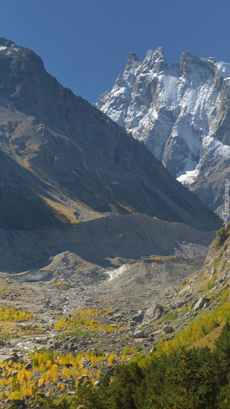 Edytor tapety: Dolina na tle ośnieżonych szczytów