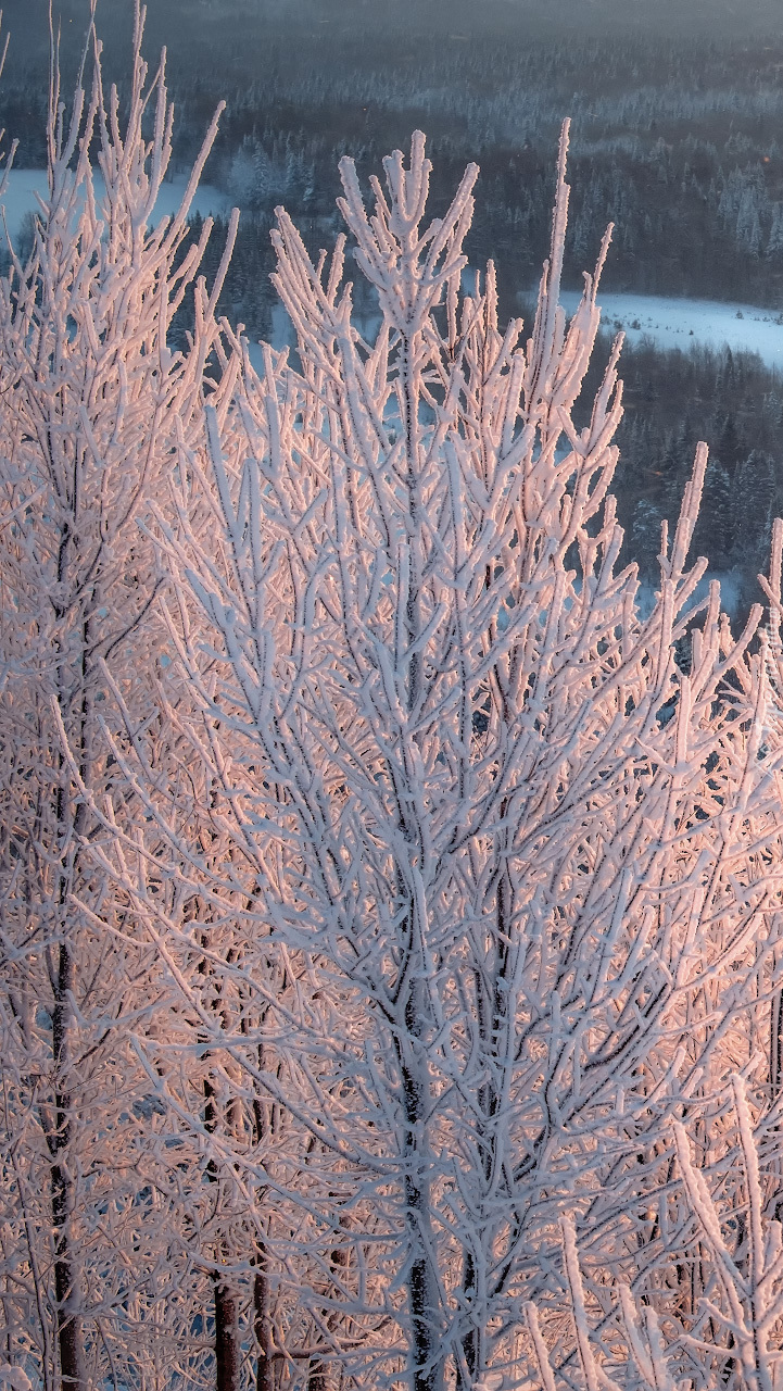 Edytor tapety: Ośnieżone gałęzie drzew