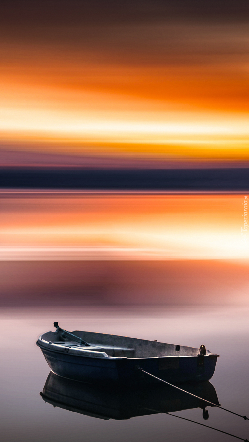 Edytor tapety: Samotna łódka na jeziorze