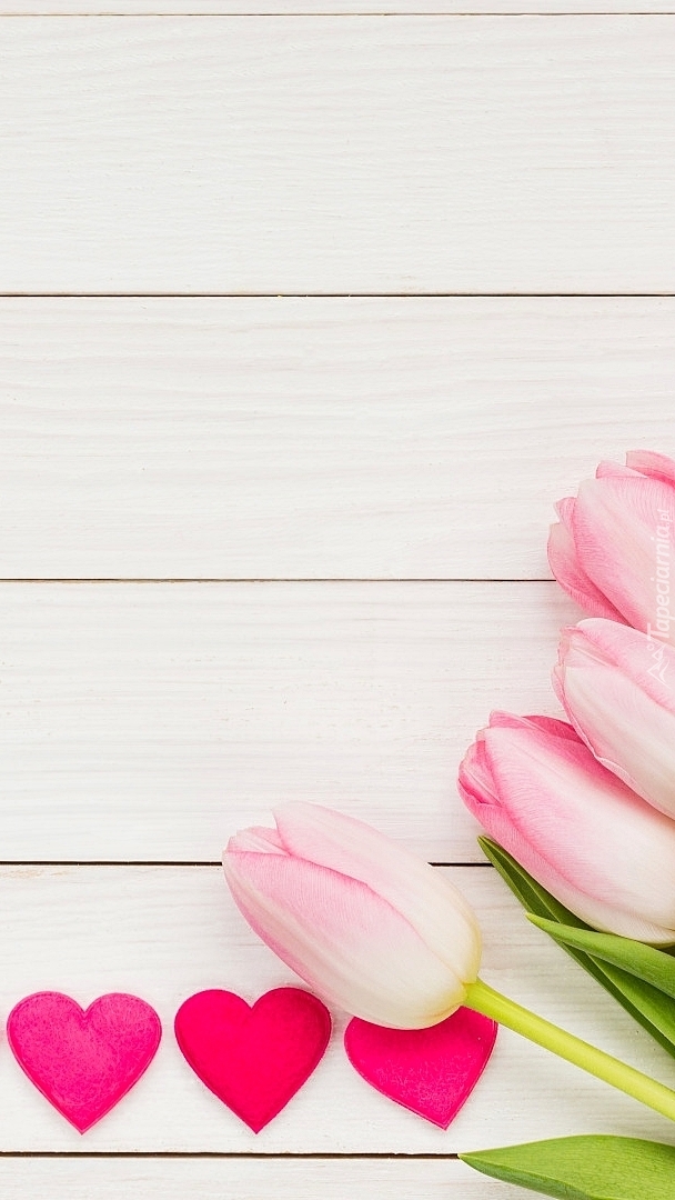Edytor tapety: Różowe tulipany i serca