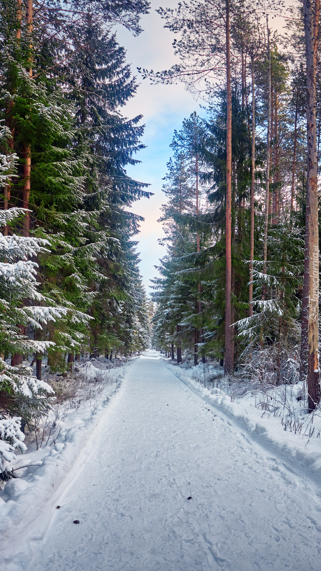 Edytor tapety: Zaśnieżona droga w zimowym lesie