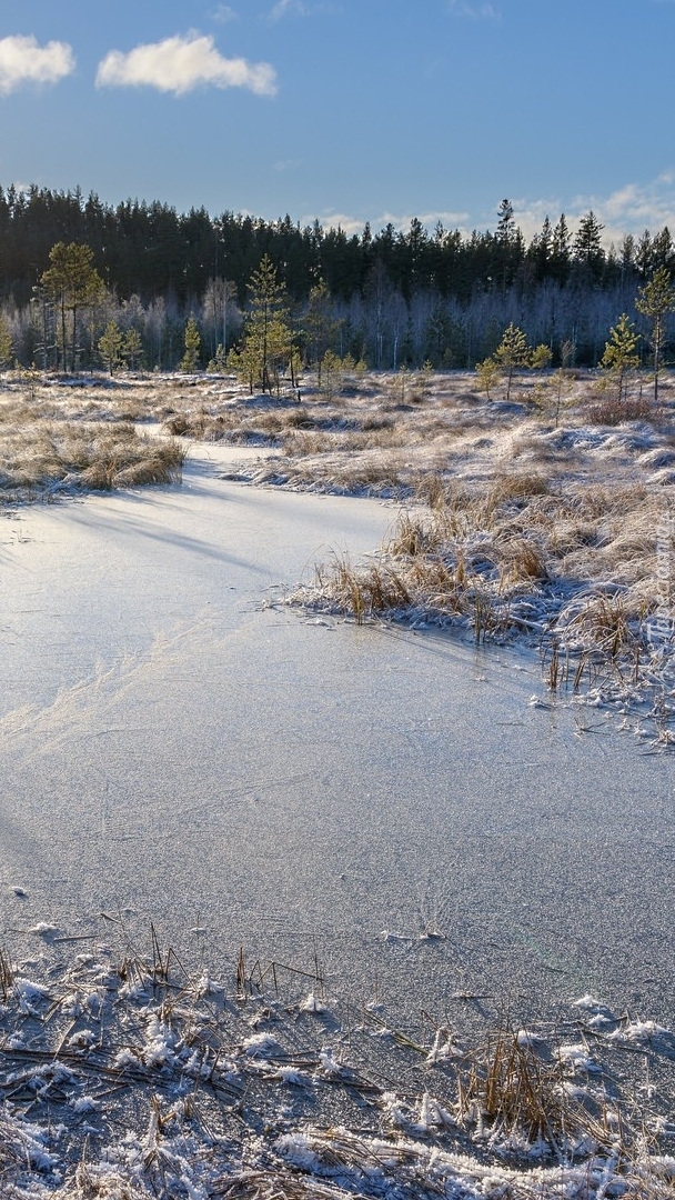 Edytor tapety: Roślinność nad zamarzniętym jeziorem