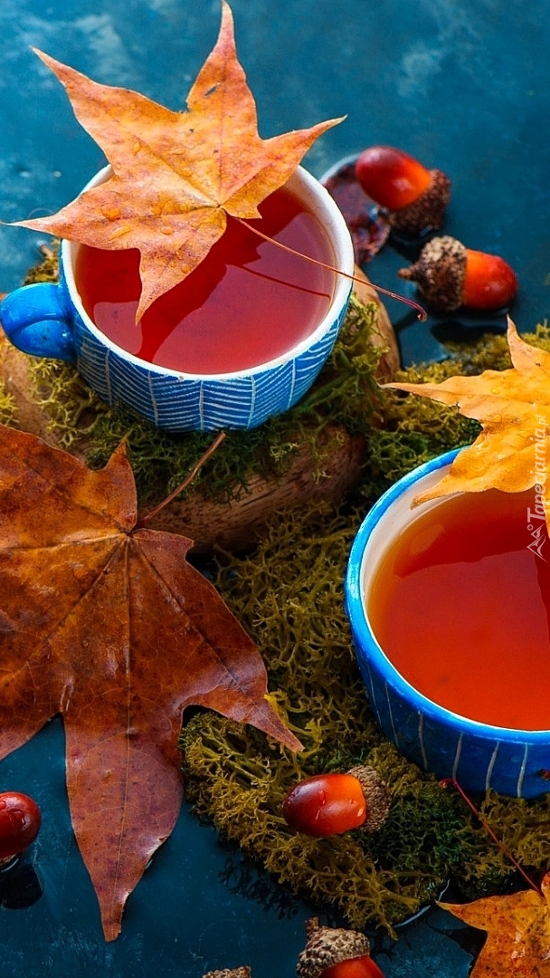 Edytor tapety: Herbata w niebieskich filiżankach