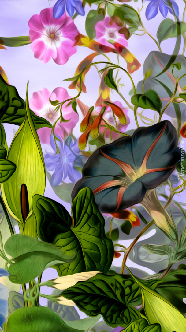 Edytor tapety: Różne kolorowe kwiaty w grafice