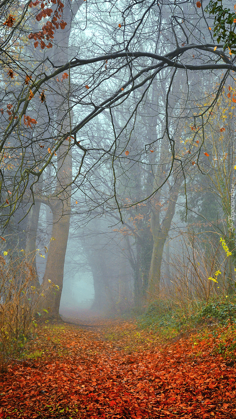 Edytor tapety: Las w jesiennej mgle