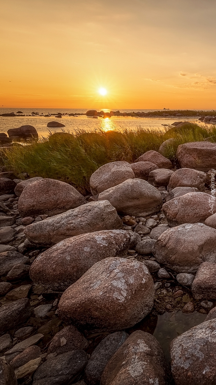 Edytor tapety: Kamienie i trawa na brzegu morza