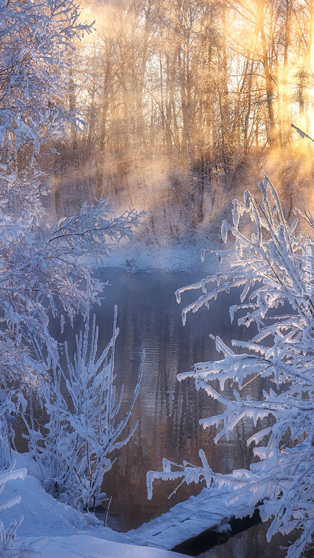 Edytor tapety: Zimowy poranek nad rzeką