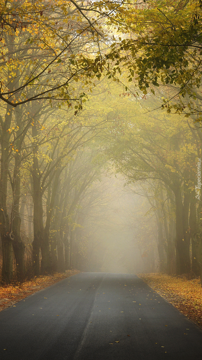 Edytor tapety: Leśna droga we mgle