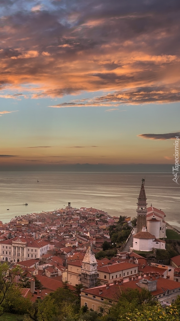 Edytor tapety: Panorama miasta Piran nad Morzem Adriatyckim