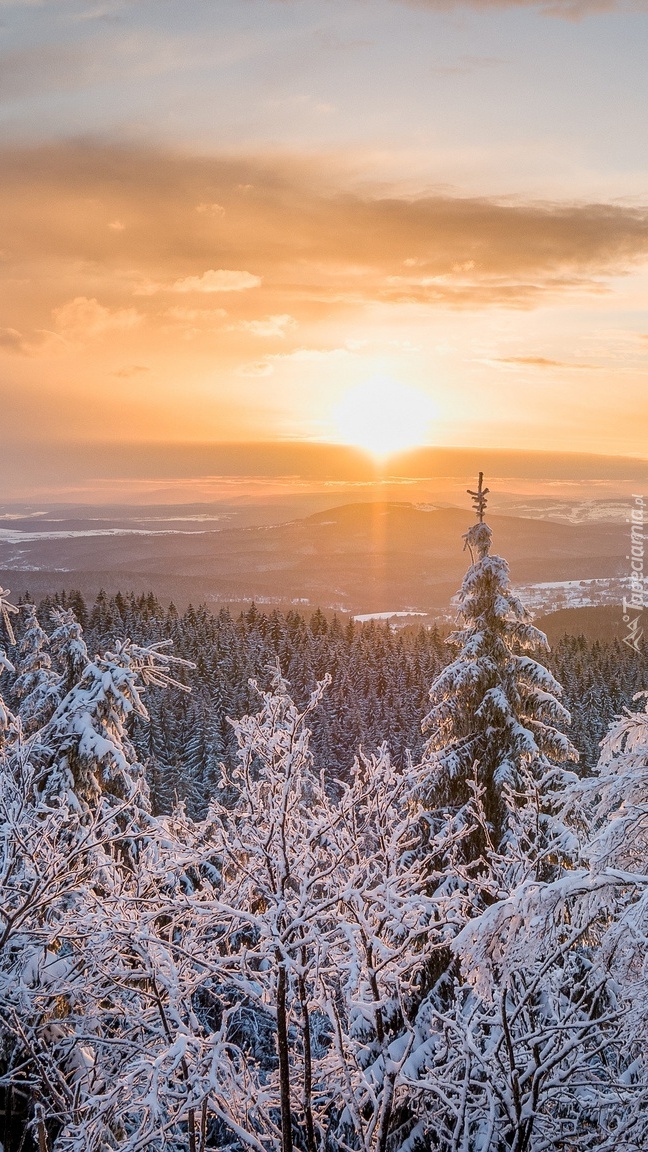 Edytor tapety: Oszronione drzewa w porannym słońcu