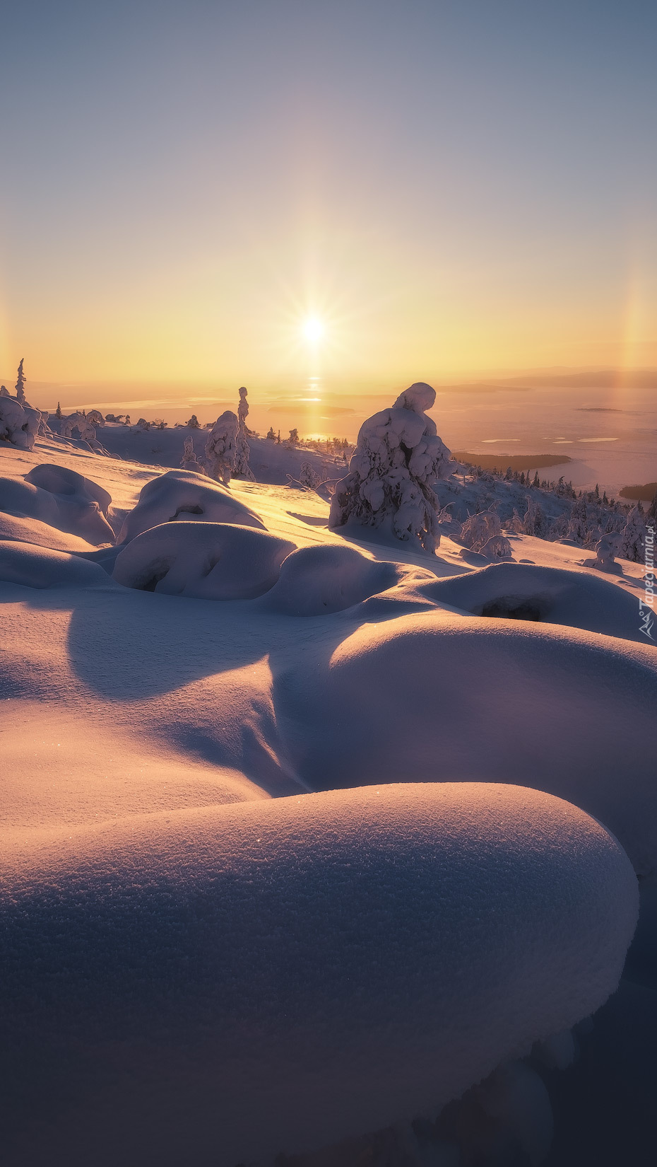 Edytor tapety: Wschód słońca nad zatoką Kandałaksza