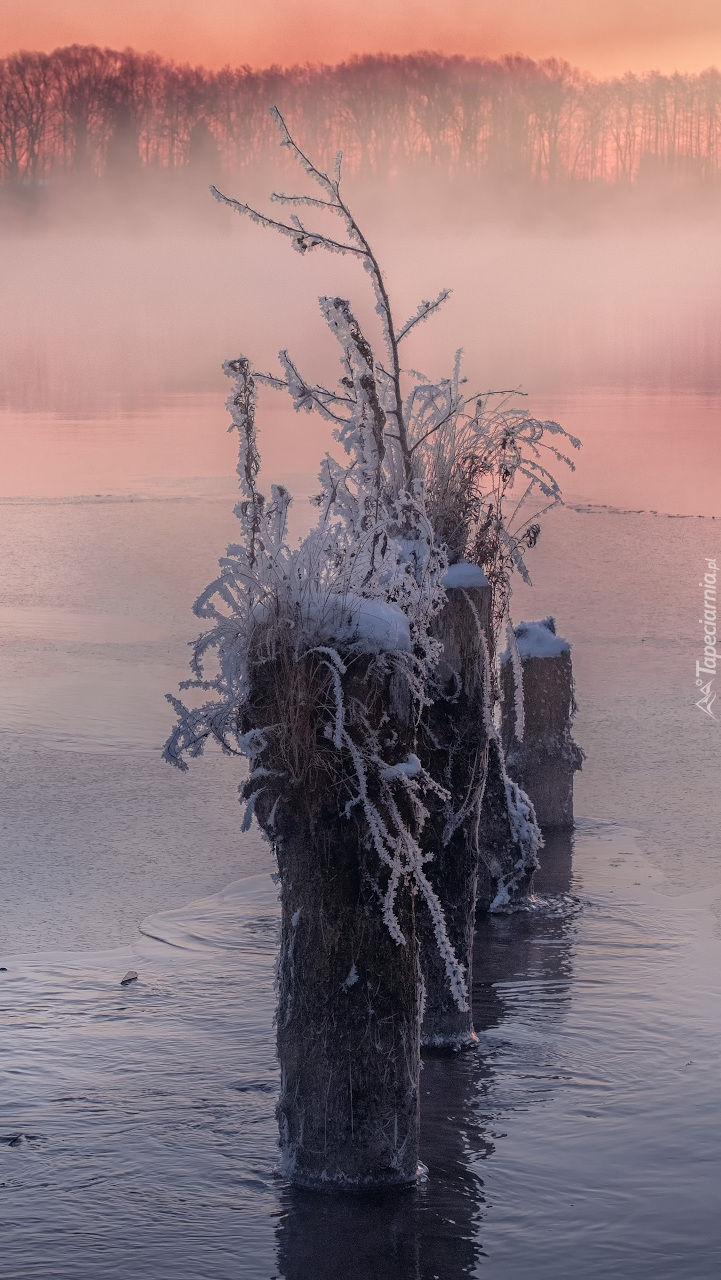 Edytor tapety: Kępka oszronionych roślin na jeziorze