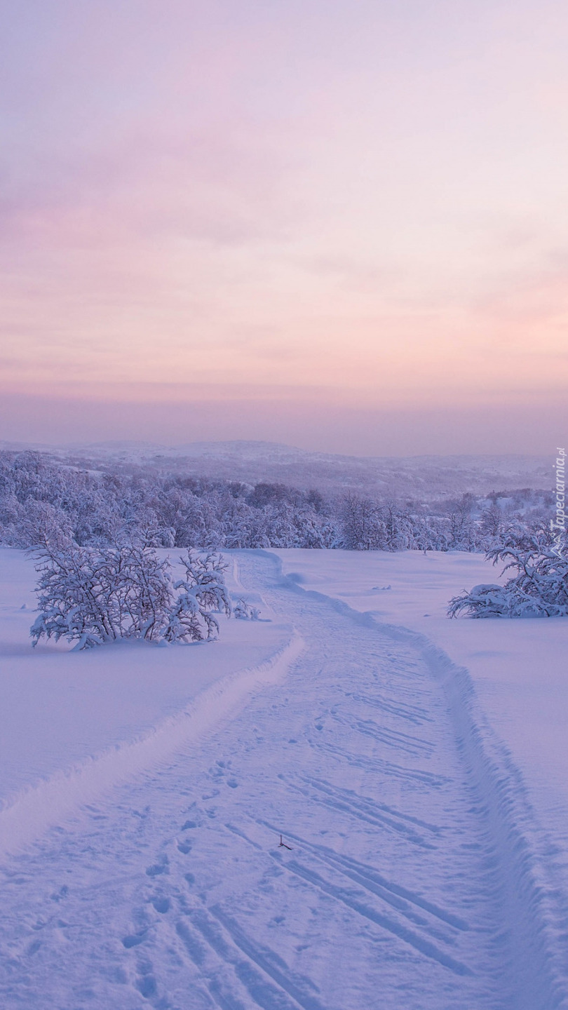 Edytor tapety: Zaśnieżona droga o poranku