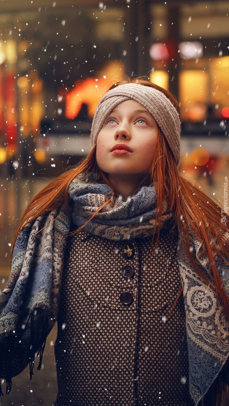 Edytor tapety: Dziewczyna spoglądająca na padający śnieg