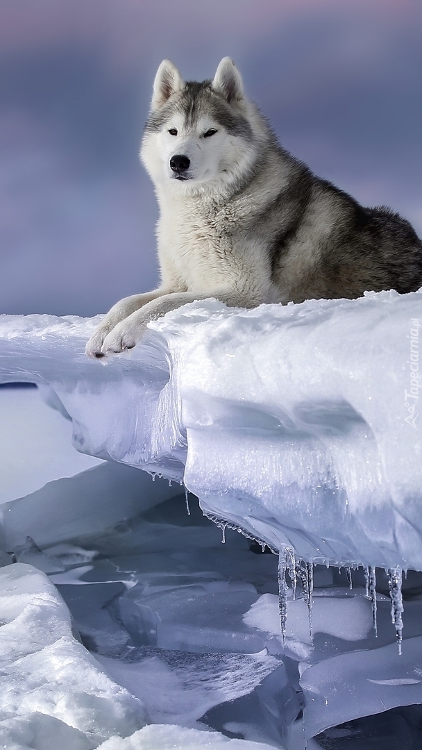 Edytor tapety: Siberian husky na śniegu