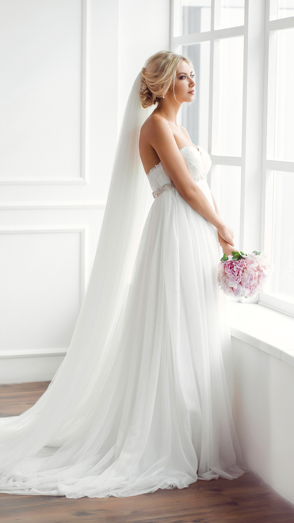 Edytor tapety: Panna młoda przy oknie
