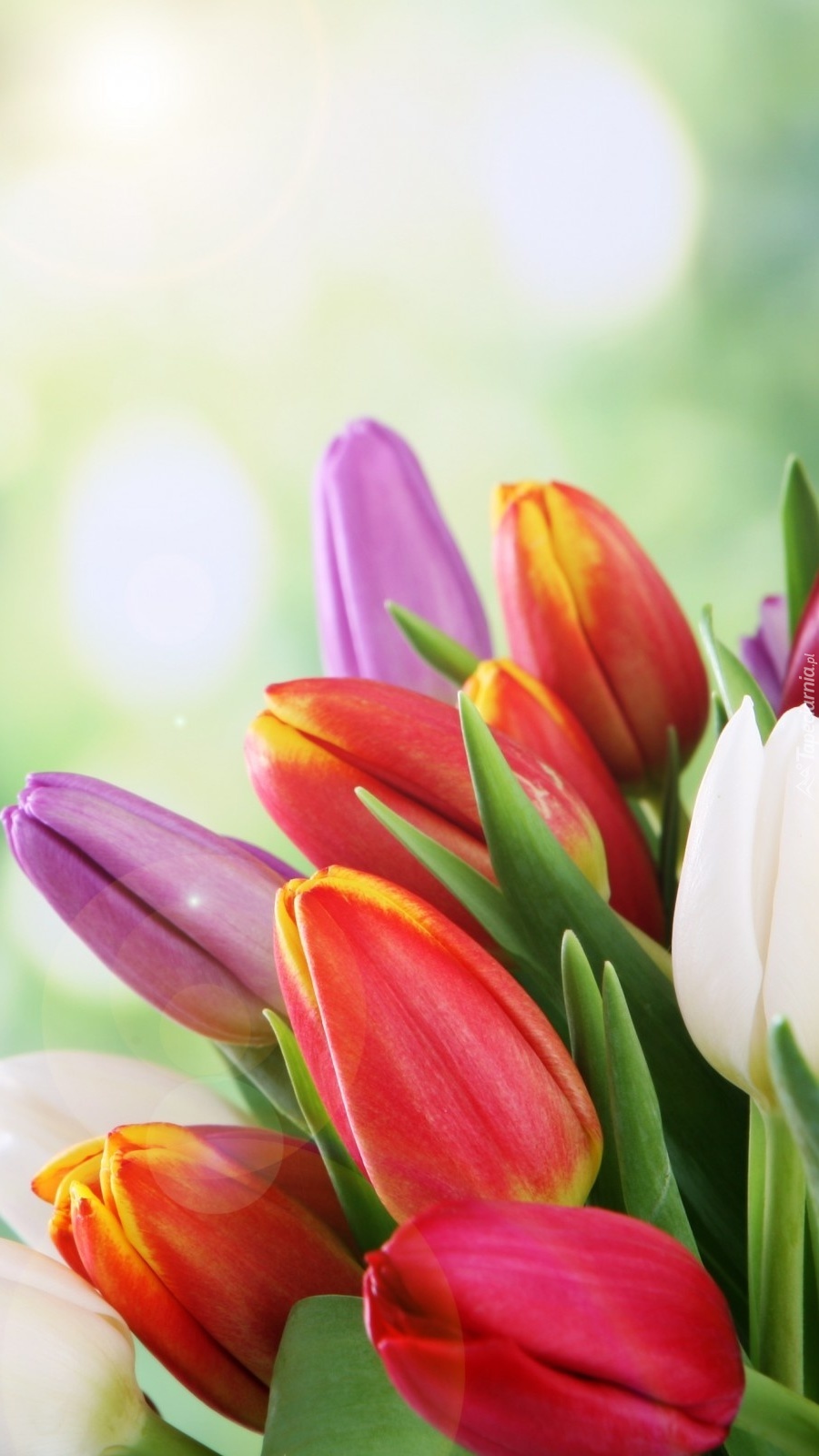 Edytor tapety: Bukiet kolorowych tulipanów