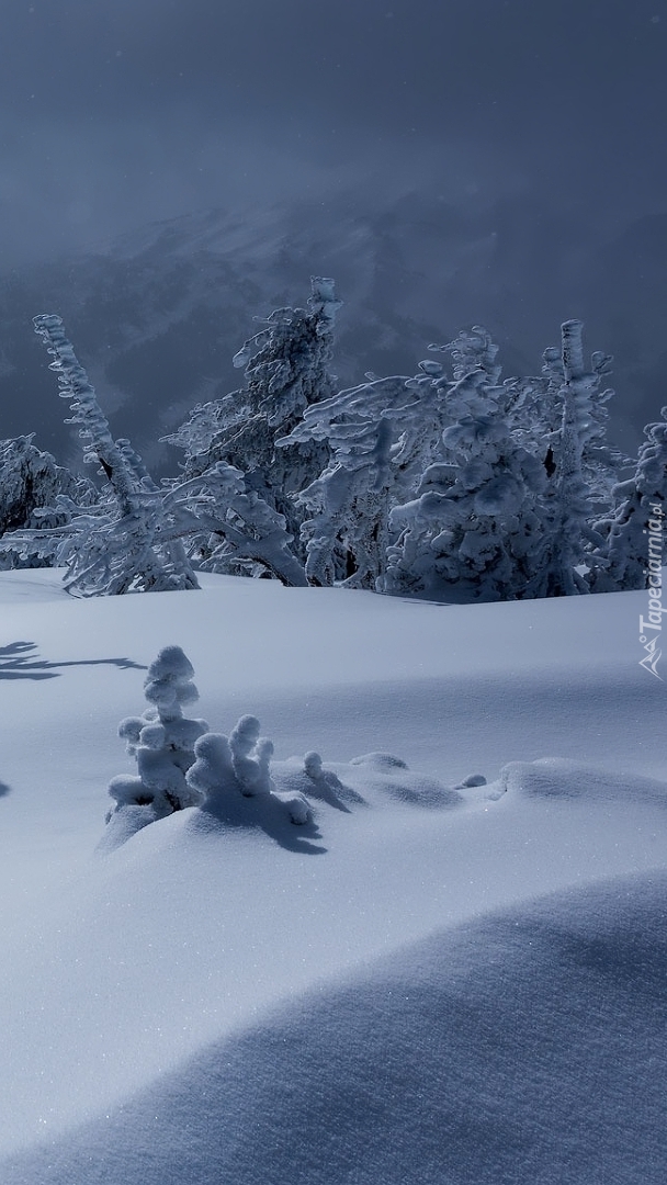 Edytor tapety: Ośnieżone drzewa i krzewy