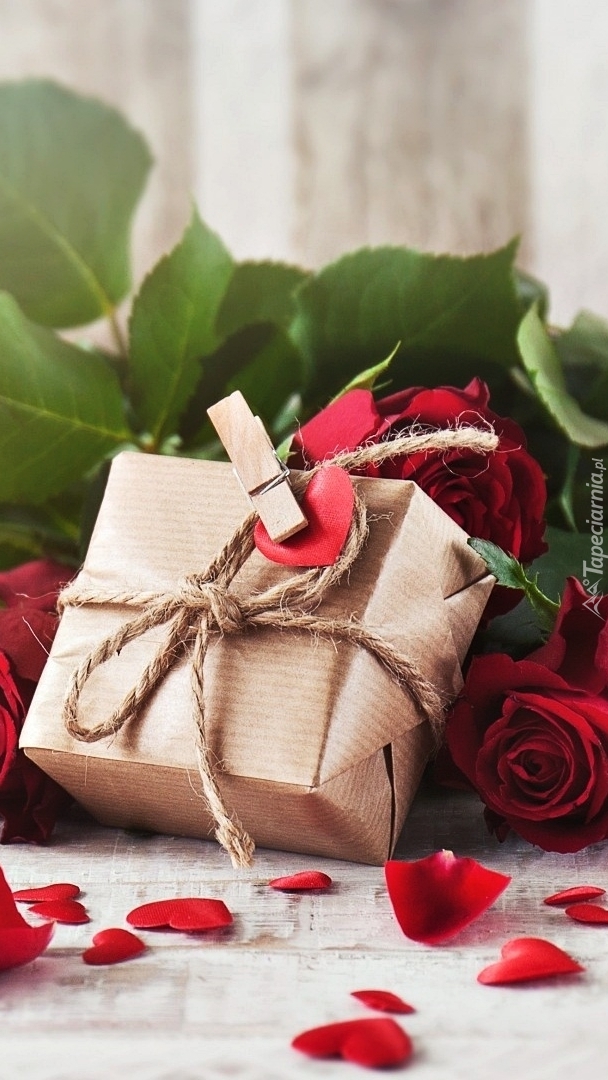 Edytor tapety: Prezent przy czerwonych różach