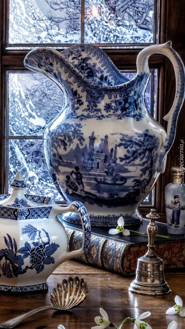 Edytor tapety: Porcelanowy dzbanek na książce