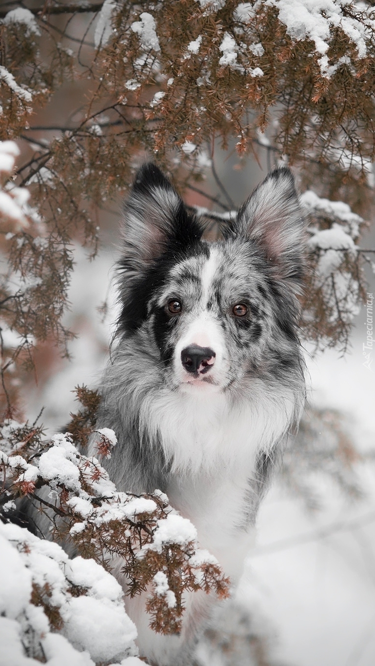 Edytor tapety: Border collie w śniegu pod gałązkami
