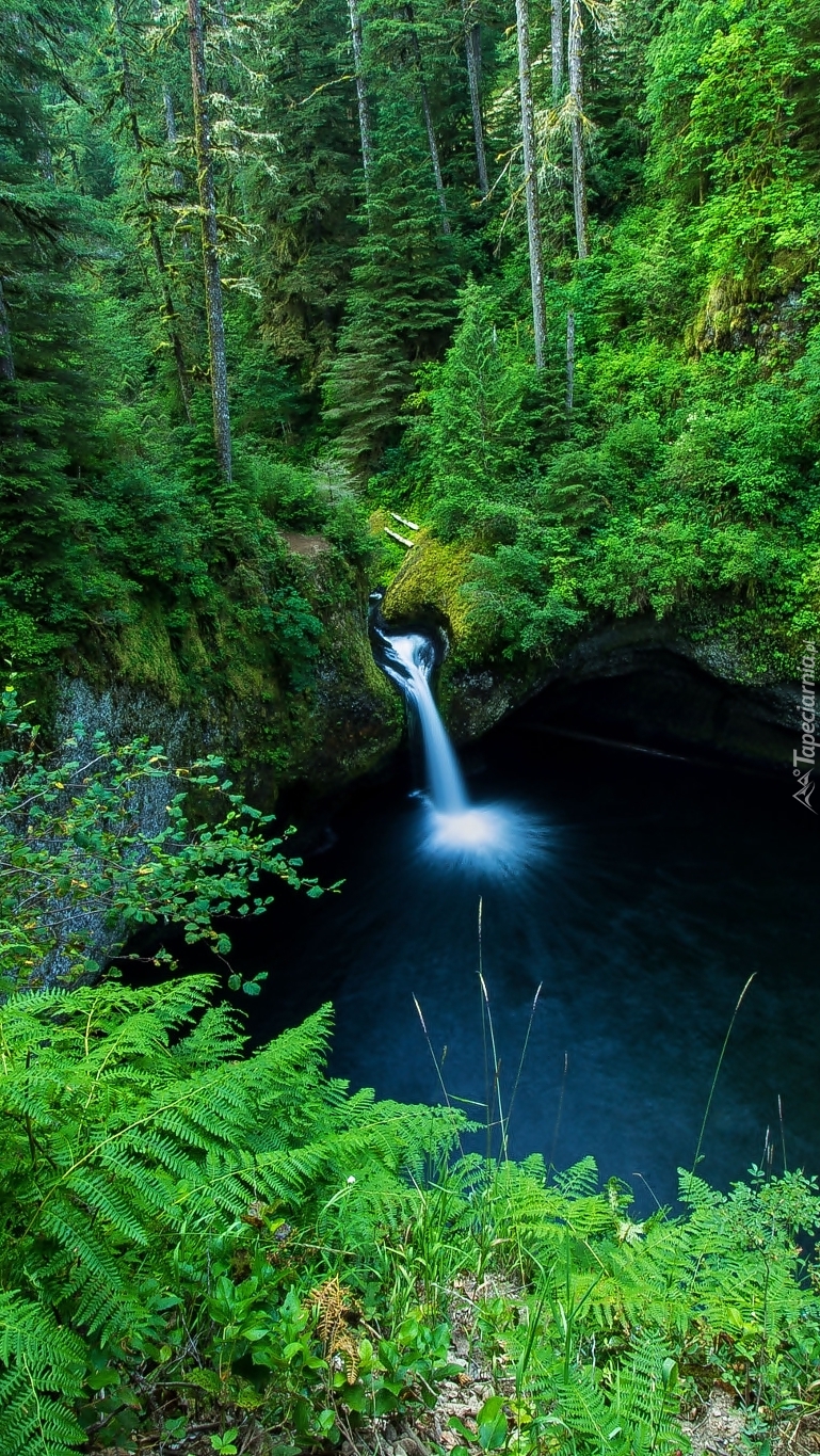 Edytor tapety: Wodospad Punch Bowl Falls w lesie