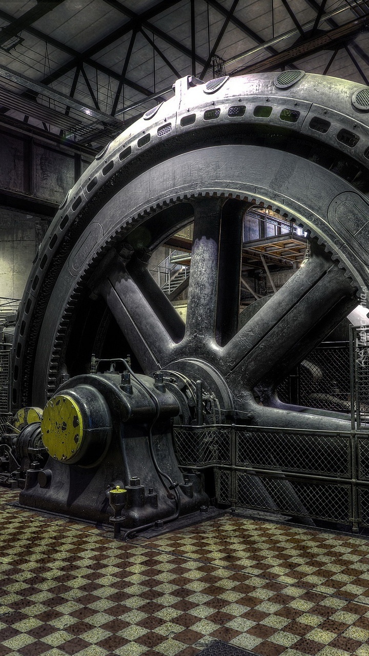 Edytor tapety: Wielkie koło w hali fabrycznej