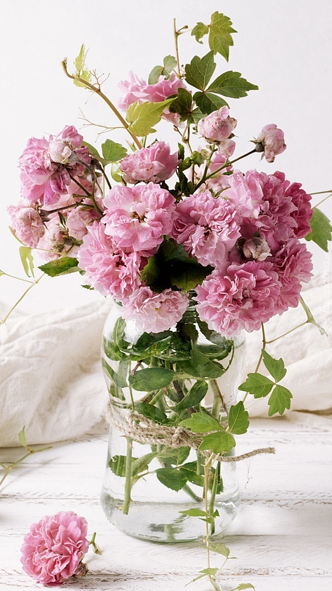 Edytor tapety: Różowe kwiatki w wazoniku
