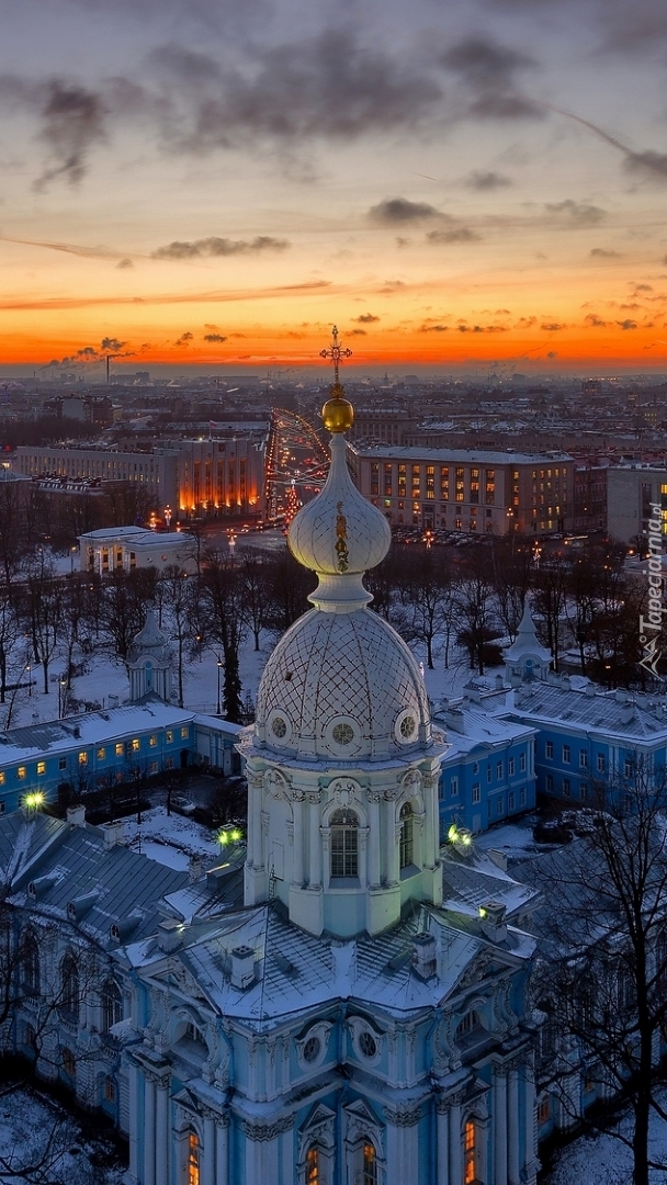 Edytor tapety: Wieża cerkwi na tle panoramy miasta