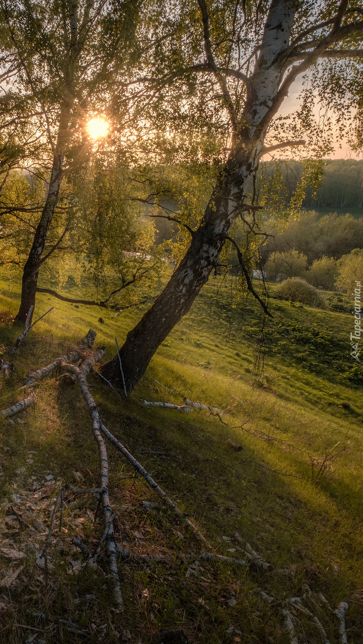 Edytor tapety: Brzozy na wzgórzach