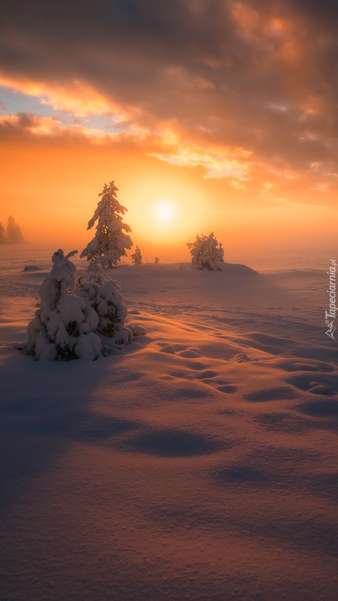 Edytor tapety: Zachód słońca z zimowymi drzewami
