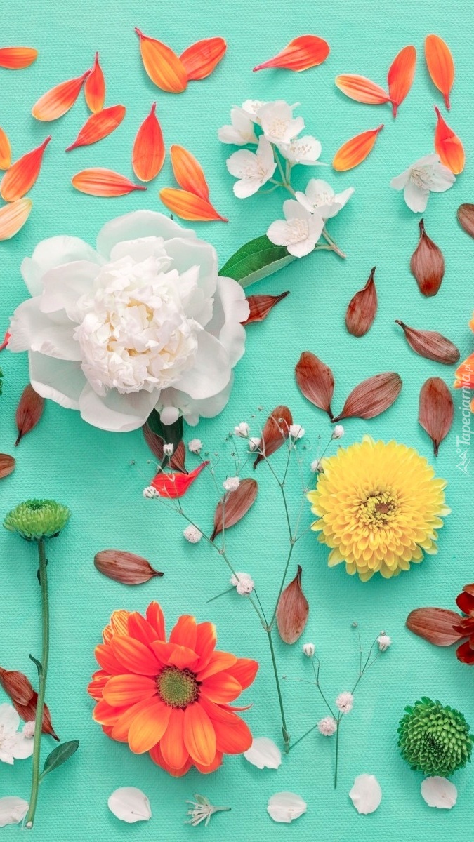 Edytor tapety: Kwiaty i płatki na zielonym tle