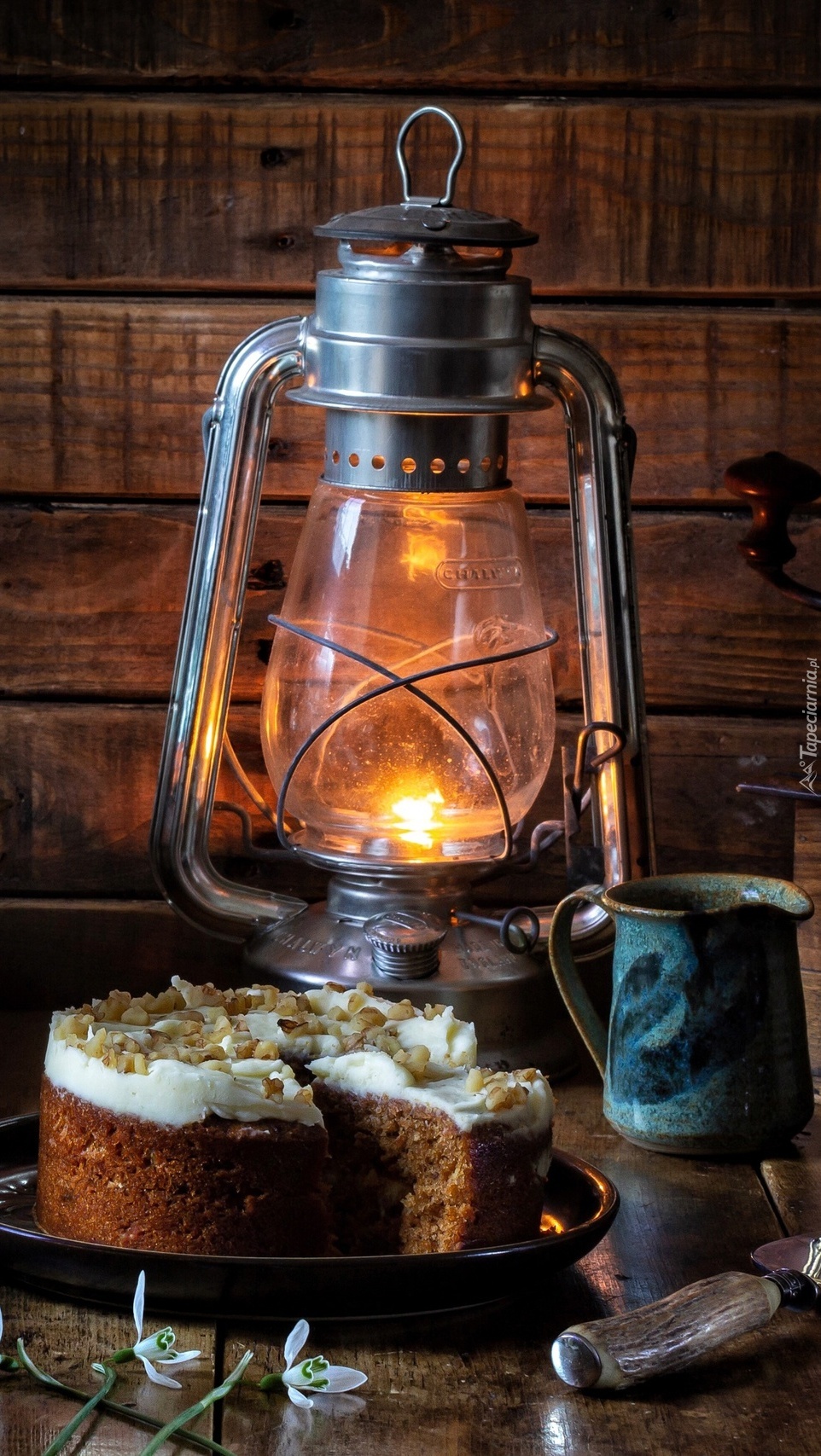 Edytor tapety: Ciasto przy lampie naftowej