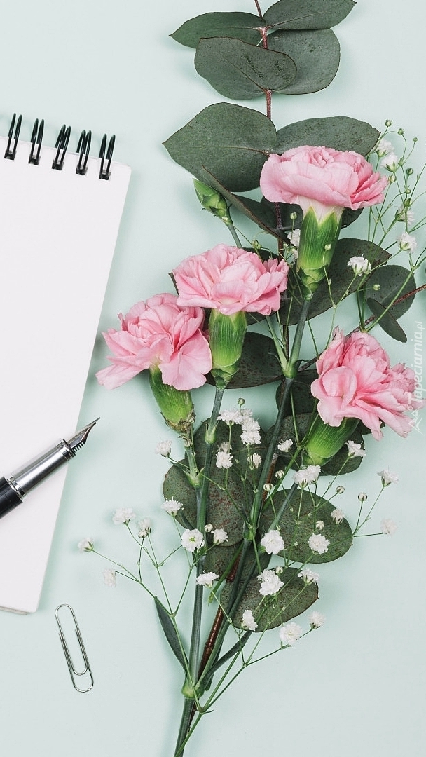 Edytor tapety: Goździki obok notesu