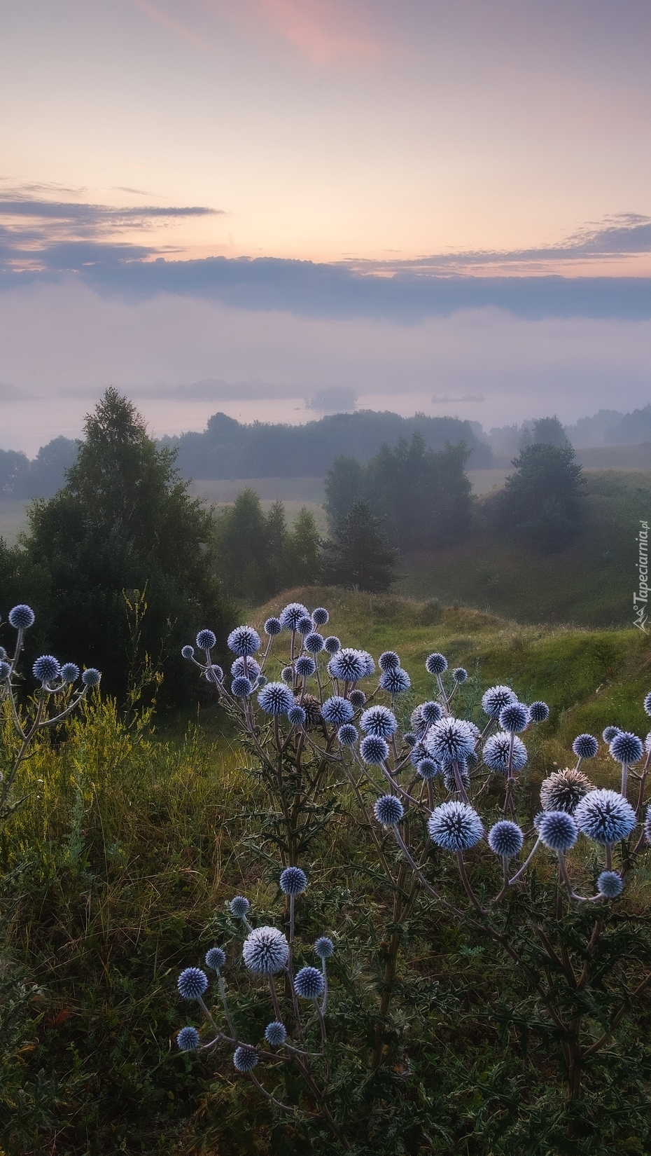 Edytor tapety: Przegorzan kulisty na wzgórzach