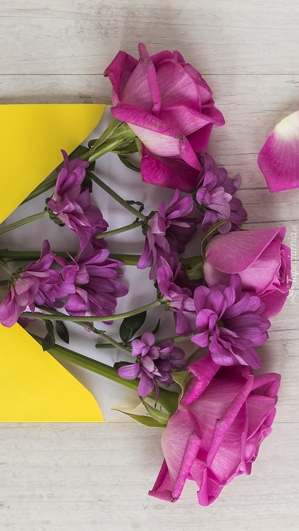Edytor tapety: Kwiaty w żółtej kopercie