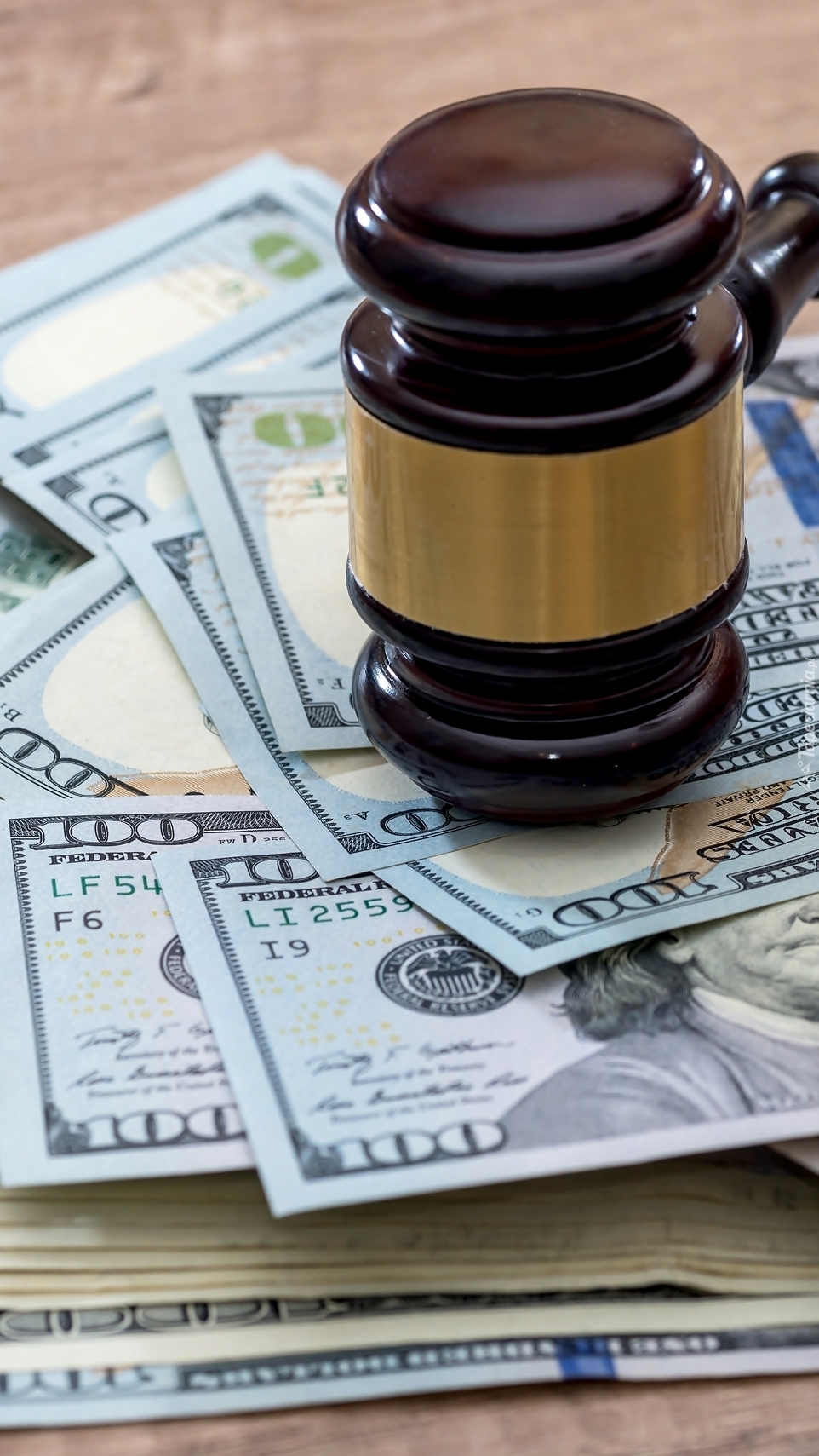 Edytor tapety: Banknoty pod młotkiem sędziowskim