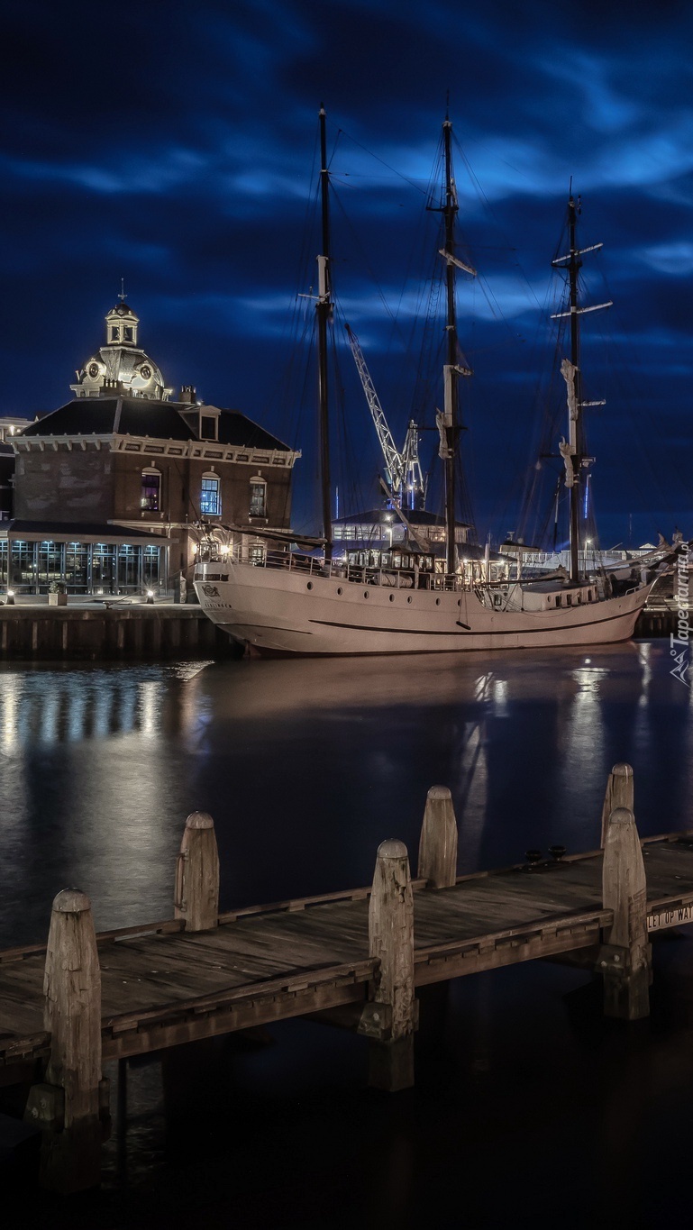 Edytor tapety: Żaglowiec w porcie nocą
