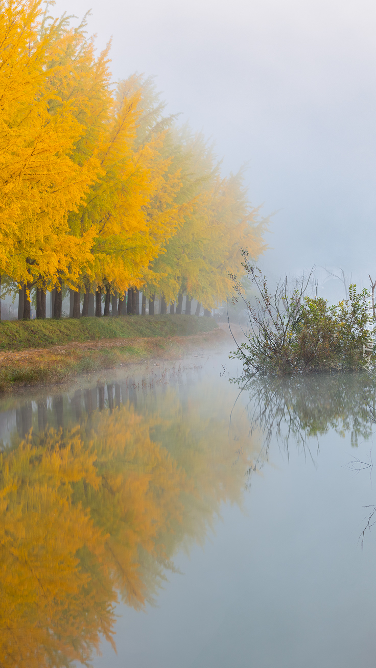Edytor tapety: Żółte drzewa wzdłuż rzeki