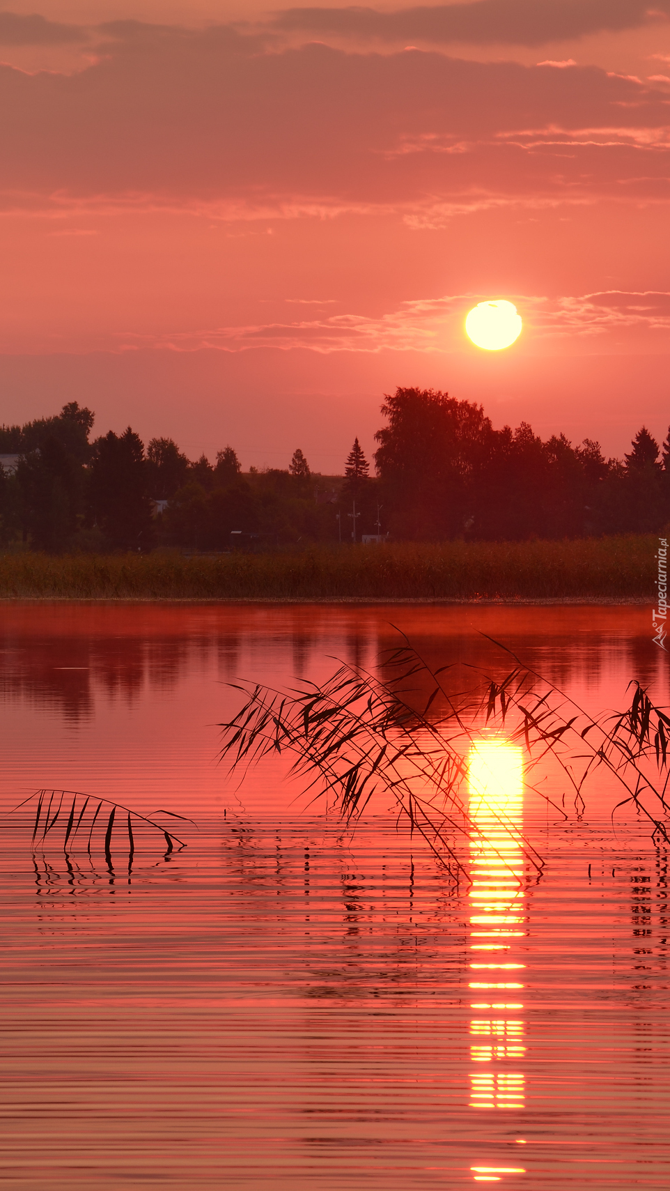 Edytor tapety: Odbicie zachodzącego słońca w jeziorze