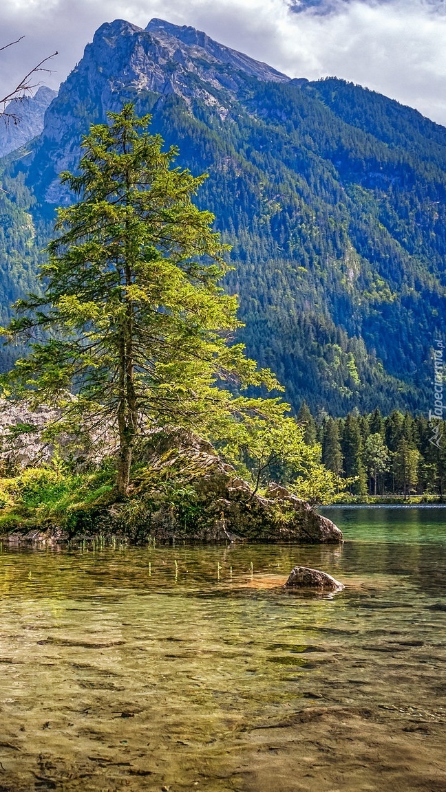 Edytor tapety: Drzewo nad jeziorem Hintersee