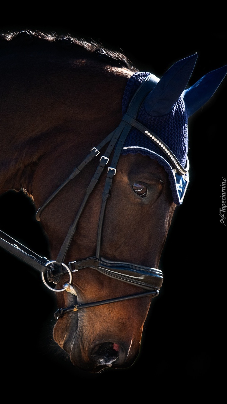 Edytor tapety: Koń w uprzęży z nausznikami