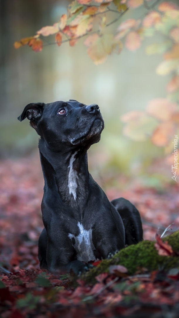 Edytor tapety: Czarny pies z uniesioną głową