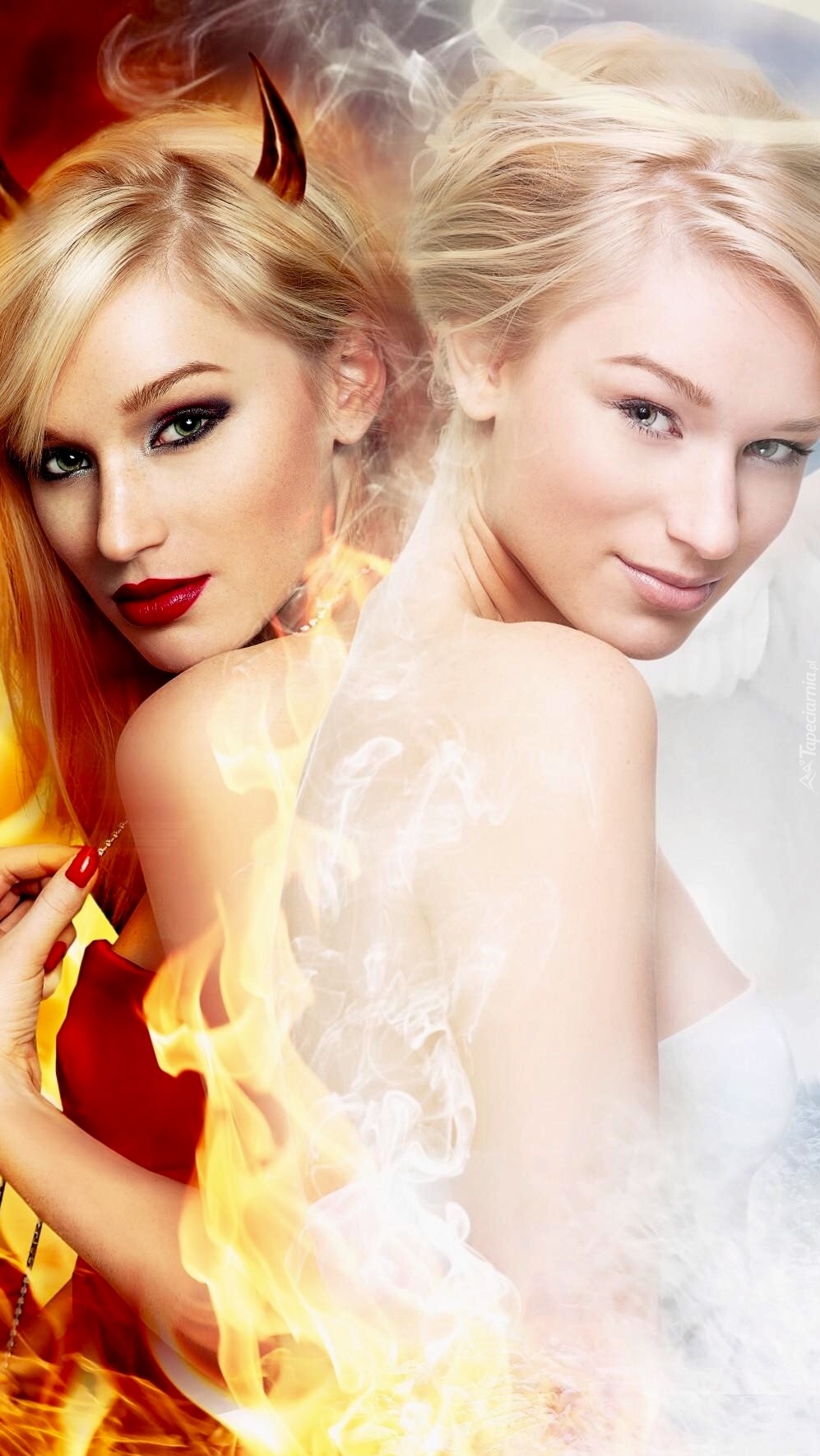 Edytor tapety: Kobieta anioł i kobieta diabeł