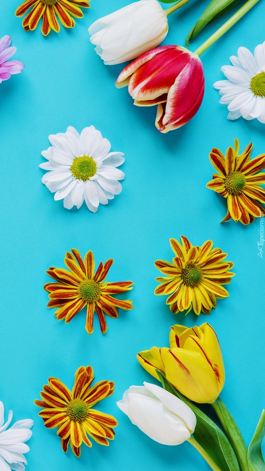 Edytor tapety: Kolorowe kwiaty na niebieskim tle