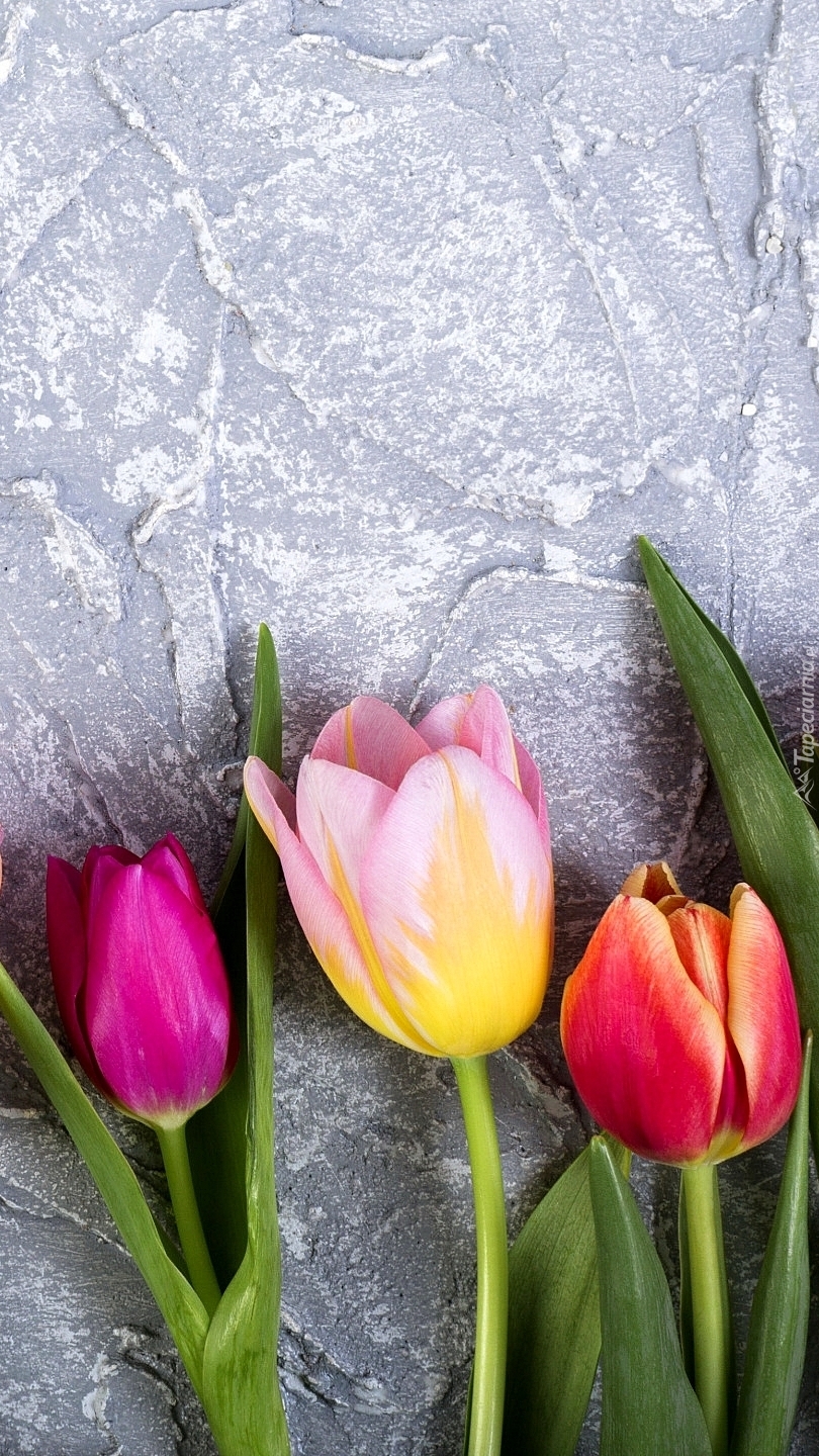 Edytor tapety: Trzy kolorowe tulipany