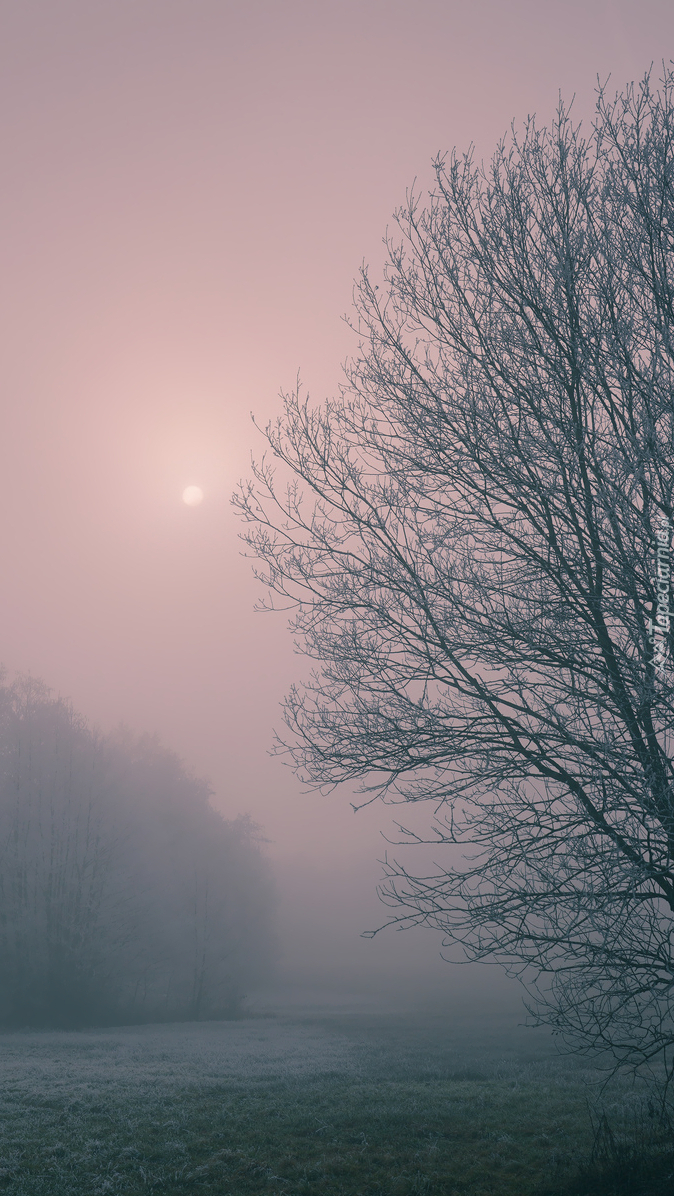 Edytor tapety: Drzewo w gęstej mgle