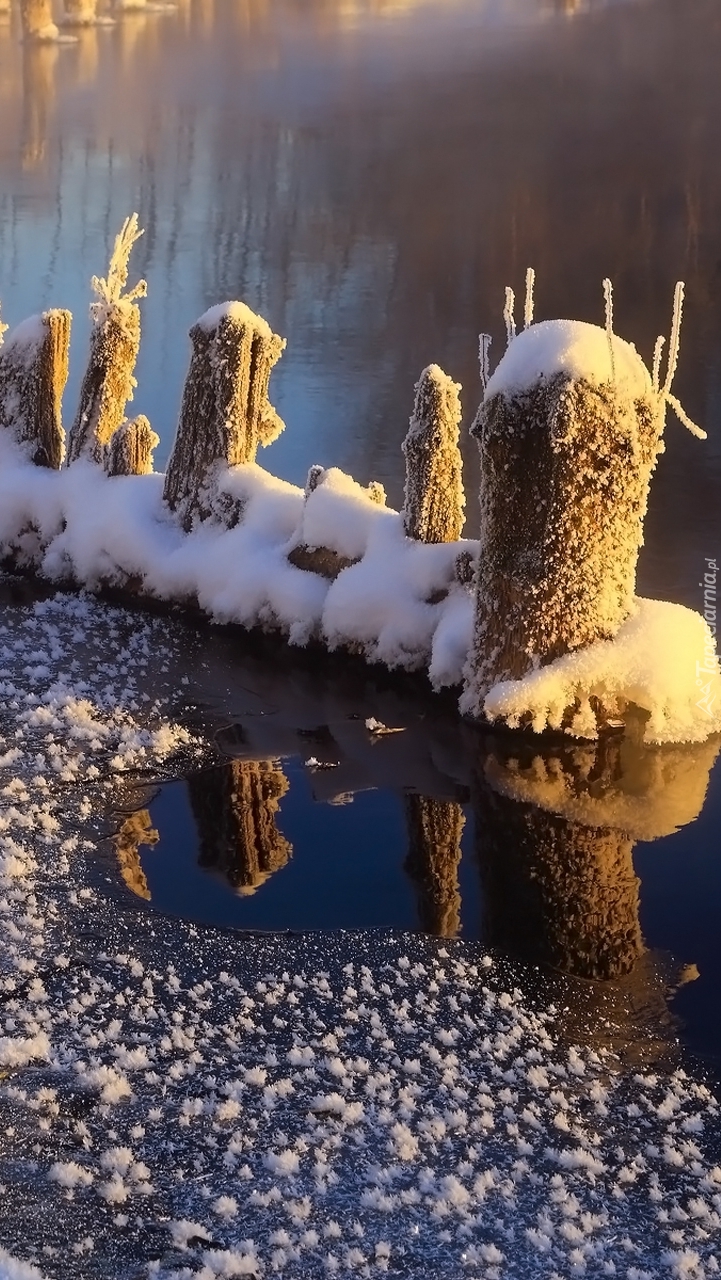 Edytor tapety: Oszronione kołki w rzece